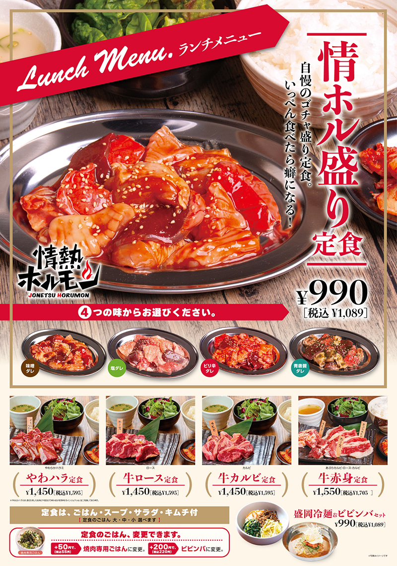 情熱ホルモンでは『ランチメニュー』を下記店舗にて実施中です。